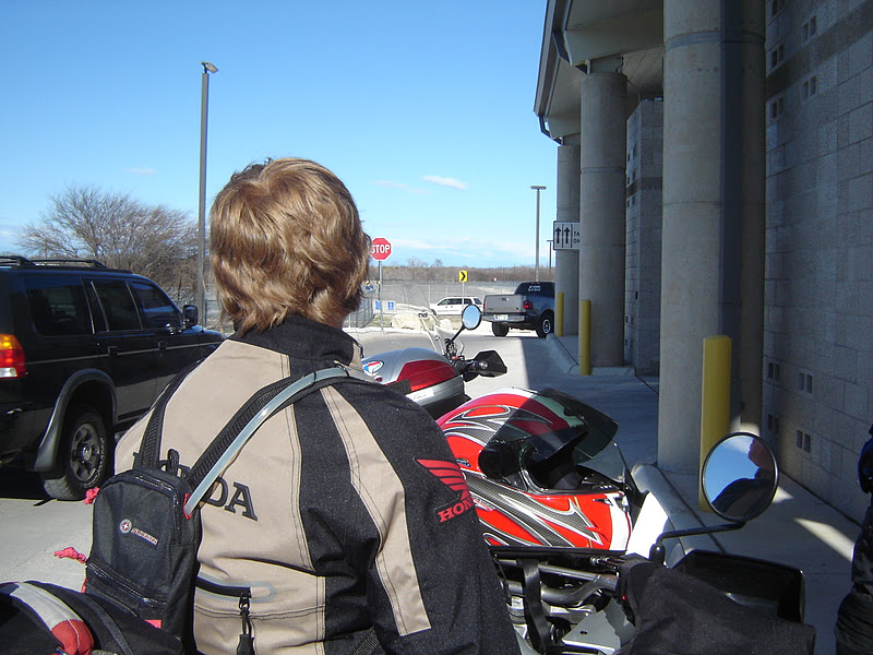 | Up bright and early the next day. Destination: Acuna, Mexico! DanC on his GS |